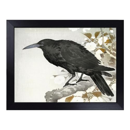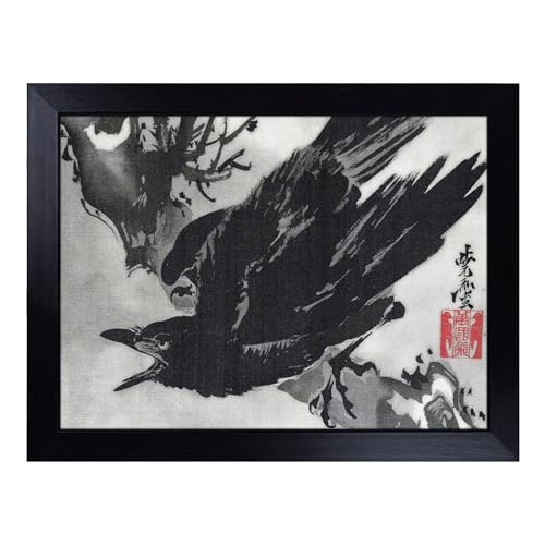 Cushioned Lap Tray with Bean Bag Base for Laptop & Eating – Crow On A Branch By Kawanabe Kyosai Design | Padded Lap Desk for Sofa, Bed & Work | Portable TV Dinner & Breakfast Tray, Easy Clean