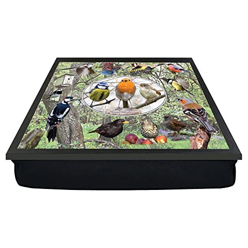British Garden Birds Lap Tray – Nature-Themed Cushioned Serving Tray | Bird Watching Gift, Wooden Breakfast Dinner Trays On Laps for Eating, Crafts & Laptop Use - Non Slip Lap Tray Cusion