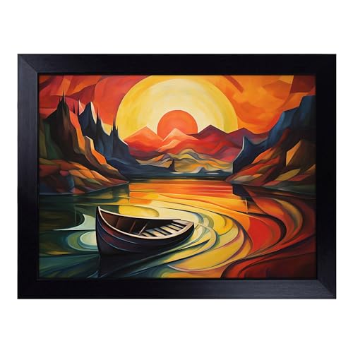 Cushioned Lap Tray with Bean Bag Base for Laptop & Eating – Boat on a Lake Abstract No.2 Design | Padded Lap Desk for Sofa, Bed & Work | Portable TV Dinner & Breakfast Tray, Easy Clean Surface