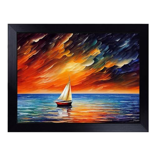 Cushioned Lap Tray with Bean Bag Base for Laptop & Eating – Sailing Boat On The Ocean Vol.2 Abstract Design | Padded Lap Desk for Sofa, Bed & Work | Portable TV Dinner & Breakfast Tray