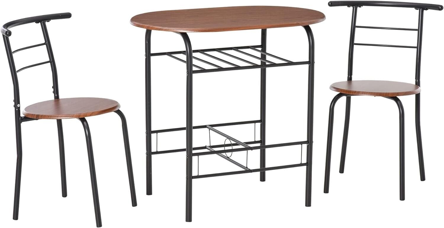 Kitchen Table 2 Chairs Set Small Oval Compact with Shelf Breakfast Dining Unit