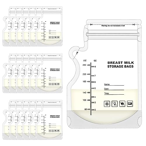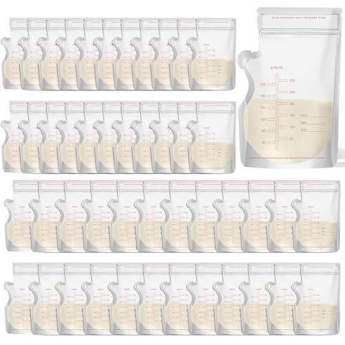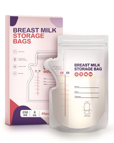 60 Pcs 250ml Breast Milk Storage Bags with Scale and Zipper Seal,Milk Storage Bags for Breastfeeding Fridge or Freezer Use
