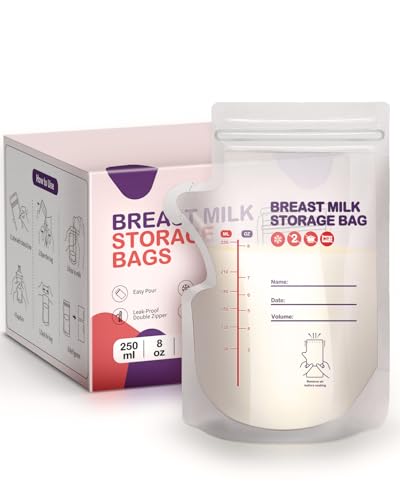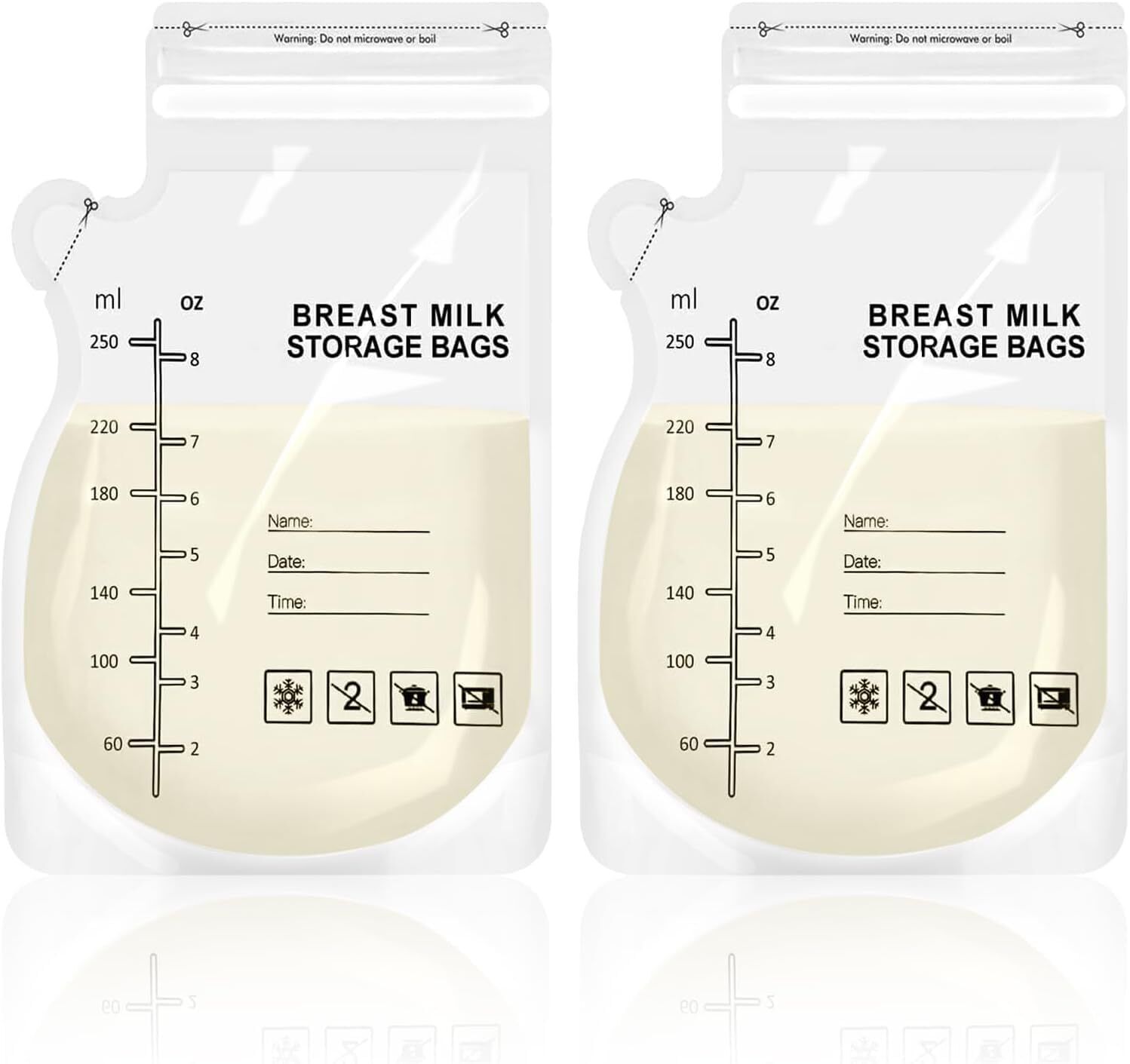 100 Pcs Breast Milk Storage Bags, 250Ml Disposable Milk Storage Bags with Pour S