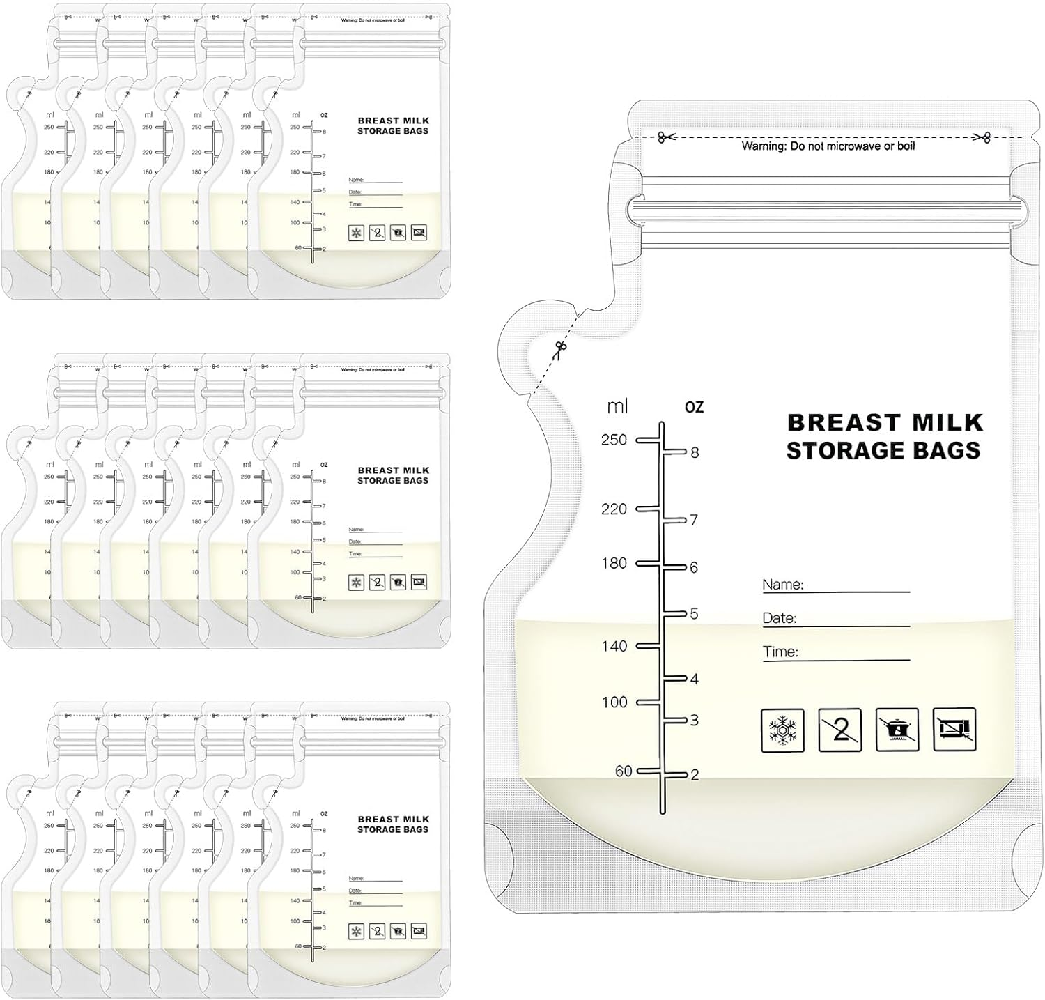 30 Pack Breast Milk Storage Bags, Easy Pour Breast Milk Storage Bag, Milk Pouch