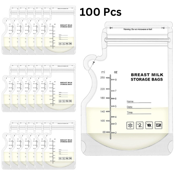 100 Pcs Breast Milk Storage Bags, 250Ml No-Leak Disposable Pouches for Freezer