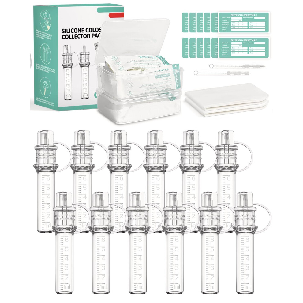 derimkcoa Colostrum Collector Kit Breast Milk Collector 6ml/12pcs,Reusable, Heat & Freezer Resistant, BPA-Free, with Cotton Cloth Wipe, Storage Case,