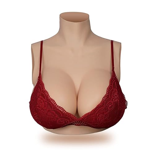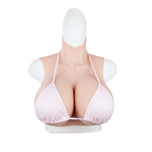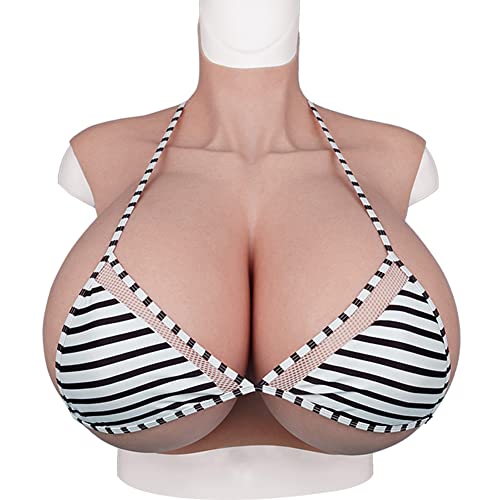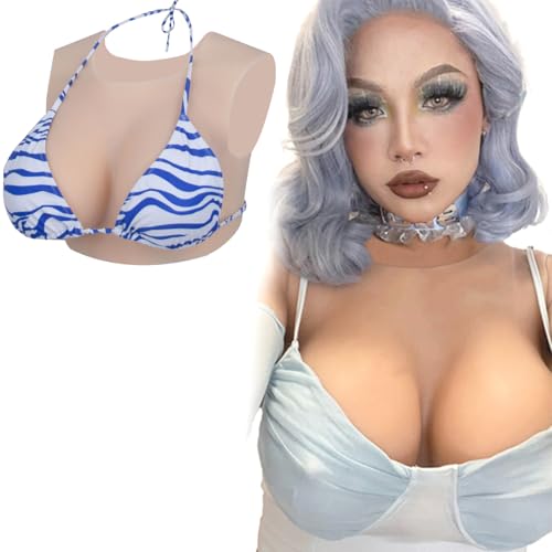 XSWL Silicone Breast Plate Fake Breast Forms Realistic Half Body Breastplate Enhancer for Crossdresser Transgender Drag Queen Costumes,Ivory White Silicone,G cup