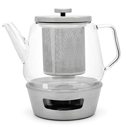 Bredemeijer Large Glass Single Wall Teapot 1.5 Litre Set with Stainless Steel Tea Cosy for Preparing Loose Tea