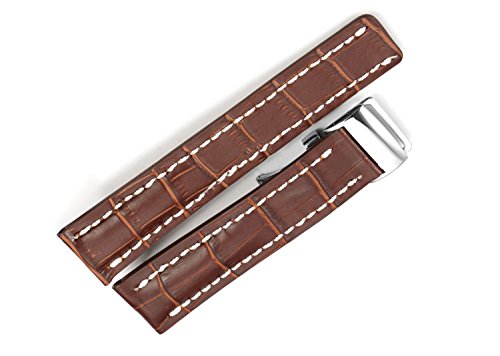 Richie strap]22mm/24mm Leather Strap Watch Band Deployment Clasp for Breitling Navitimer Transocean BA57 A193701 760P2 (22mm, Brown)
