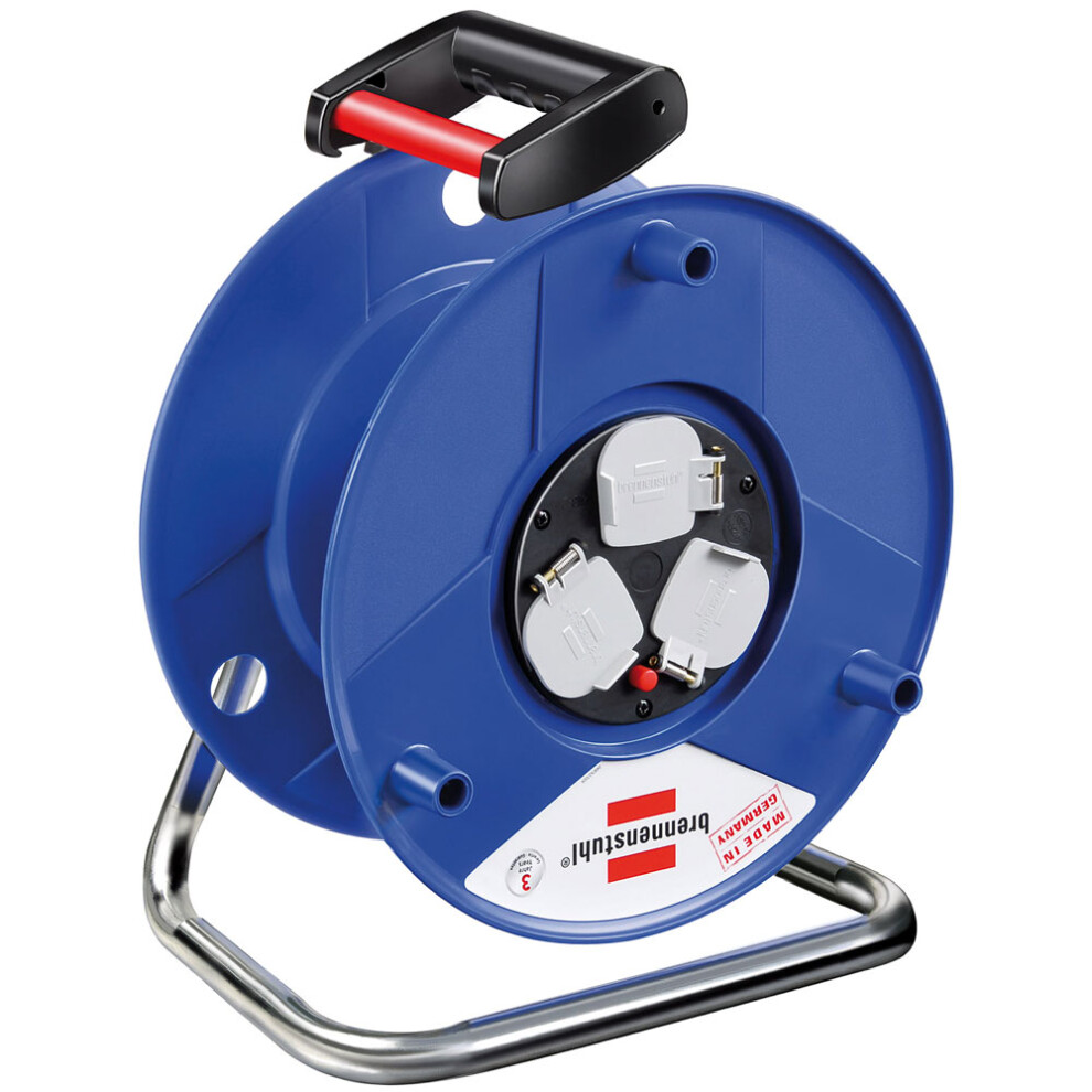 Brennenstuhl Garant 3-way socket cable reel without extension cable (rust-proof), empty reel with ergonomic handle