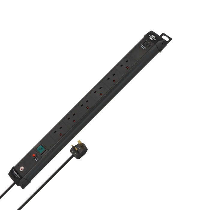 Power switch, Angled sockets, Surge Protector, Designed for rack mounting