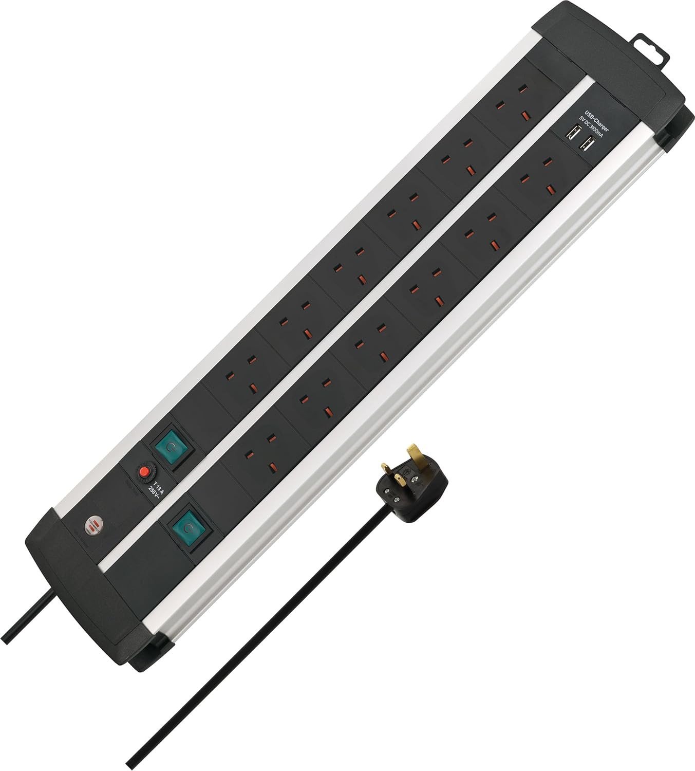 Power switch, Angled sockets, Surge Protector