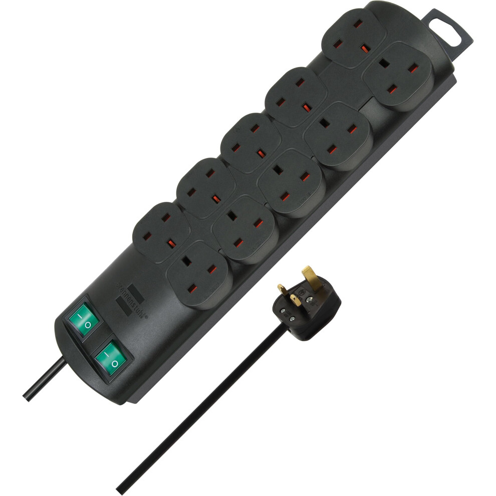 Brennenstuhl Primera-Line 10-way Extension Lead (Power strip with 2 switches for 5 sockets each and 2m cable) Black