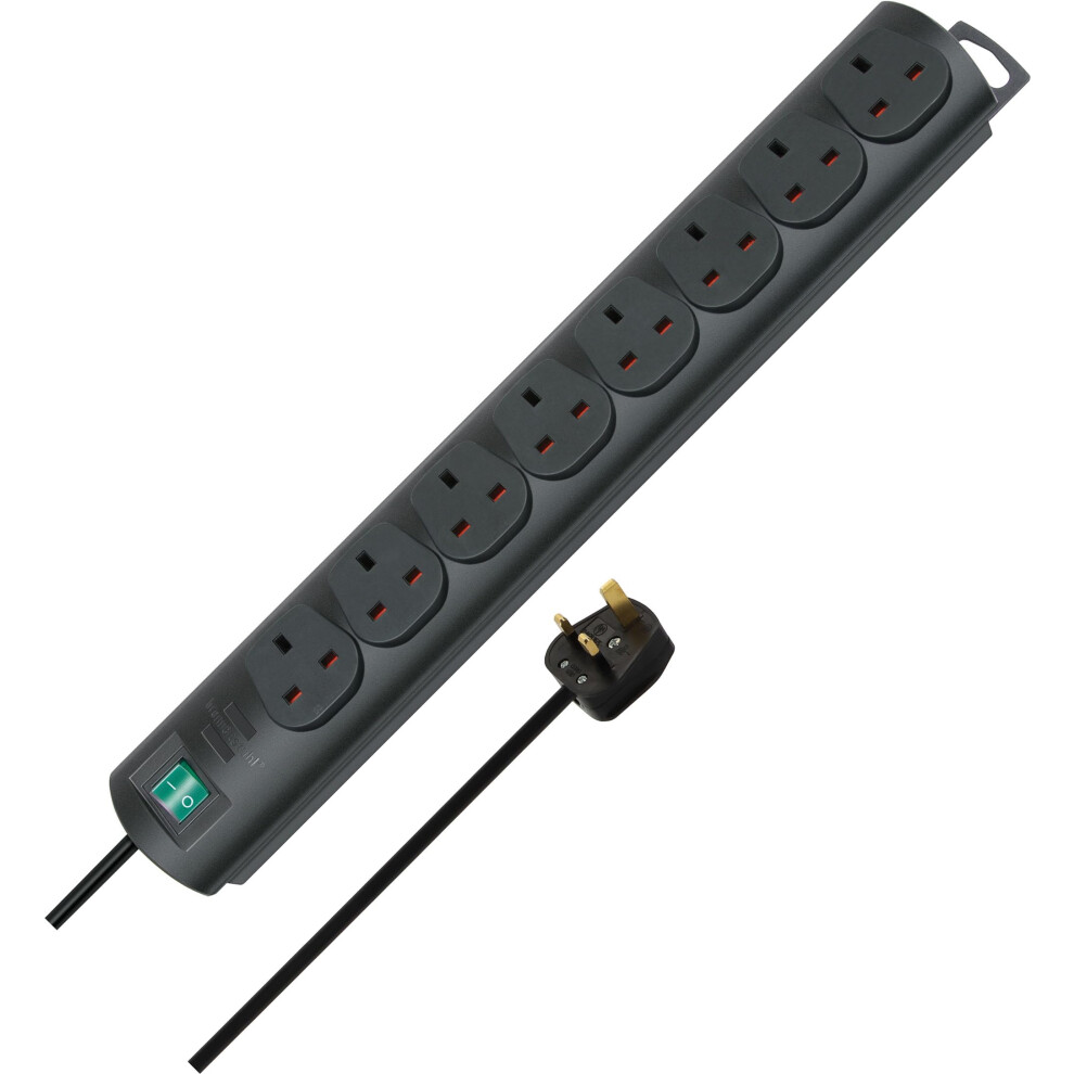 Brennenstuhl Primera-Line 8-way Extension Lead (Power strip with switch and 2m cable) Black