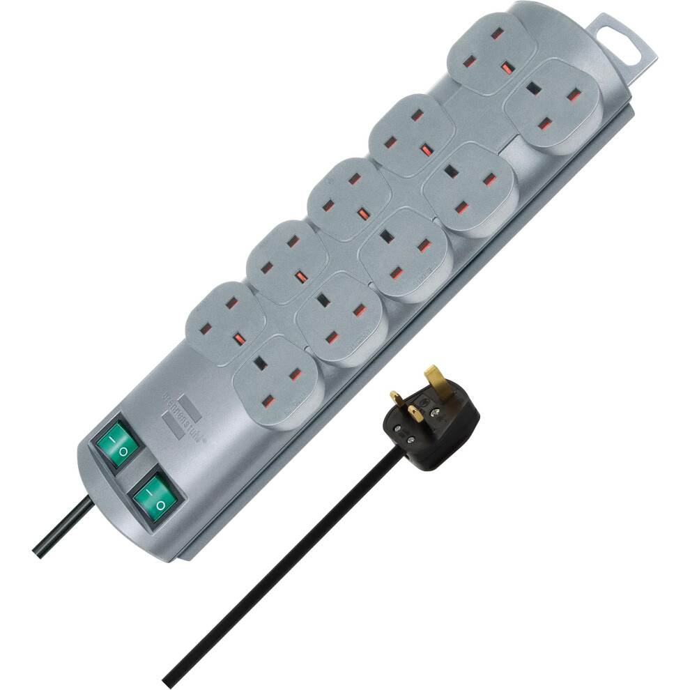 Brennenstuhl Primera-Line 10-way Extension Lead (Power strip with 2 switches for 5 sockets each and 2m cable) Silver