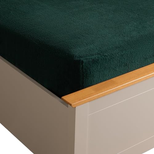 Brentfords Fitted Sheet Double Bed Teddy Fleece, Double Bed Sheets Fitted Thermal Bedding Ultra Soft Fade Resistant Double Bed Sheet Winter Bedding - Forest Green