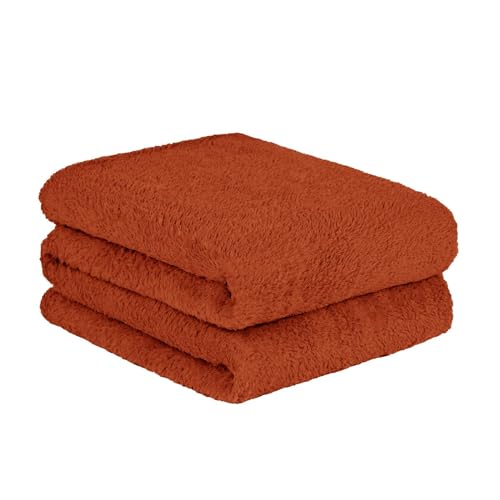 Brentfords Teddy Fleece Throw, Burnt Orange Throws for Sofas Blanket for Winter Double Bed King Ultra Soft Thick Comfy Fleece Blankets Couch Covers, 200x250cm