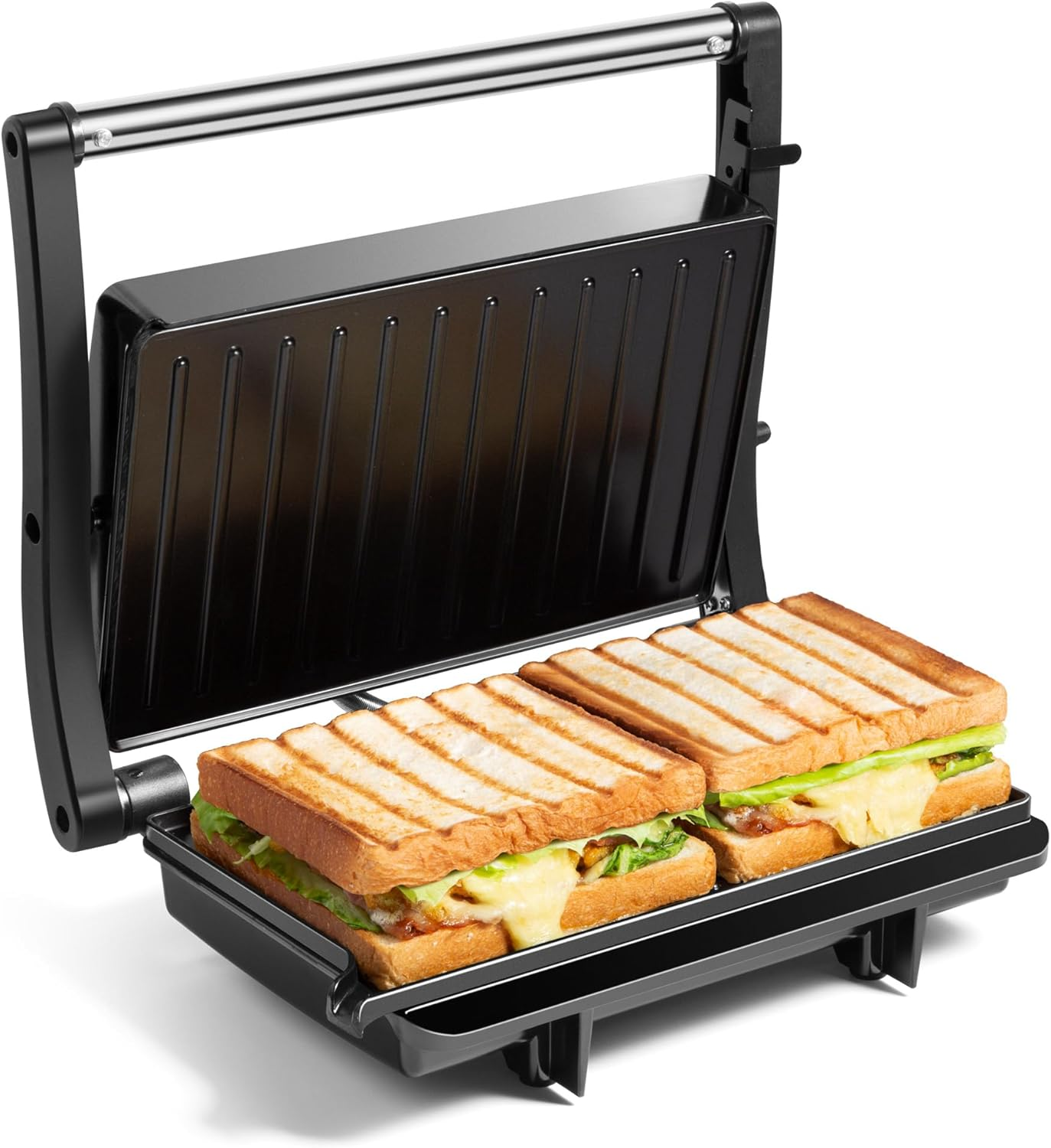 Snailar 2 Slice Sandwich Toaster with Grill Plates, Non-Stick, PFOA Free, Cool Touch Handle, 750W, Black