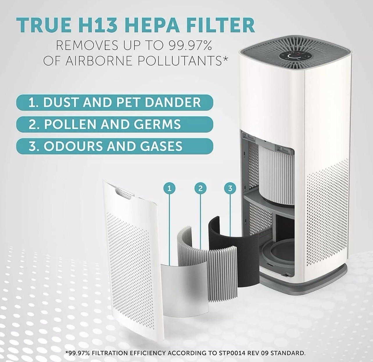 Breville 360° Light Protect Air Purifier | Quiet, True H13 HEPA Filter | Removes up to 99.97% Dust, Smoke, Pollen & More | 3 Speeds | Sleep Mode | Filter Change Indicator | Touch Control Panel
