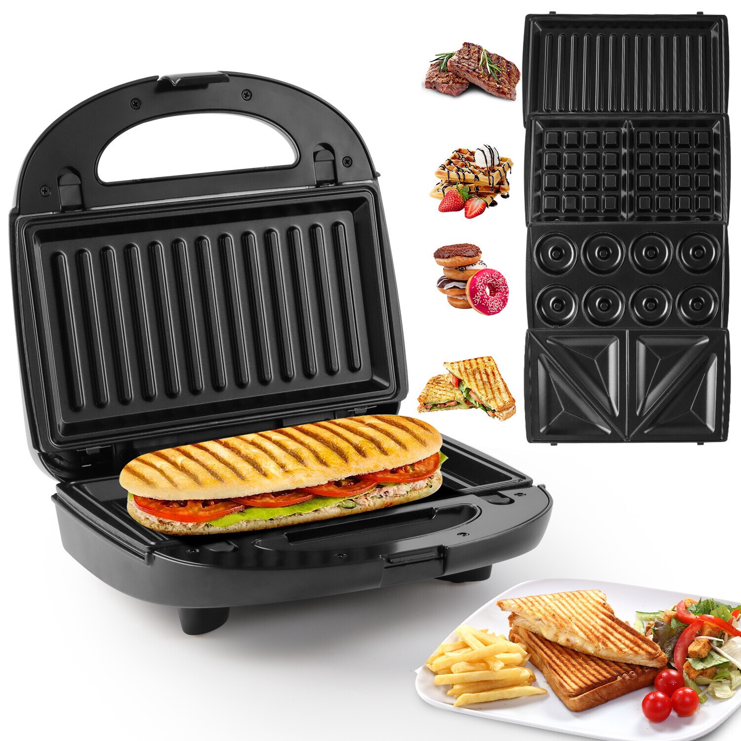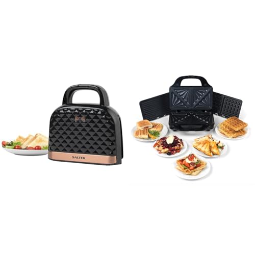 Salter 3-In-1 Snack Maker - Sandwich Toaster, Waffle Maker, Panini Press Grill, Includes Removable Extra Large Deep Fill Hot Plates, Non-Stick, 900W, Auto Temperature Control, Stay Cool Handle