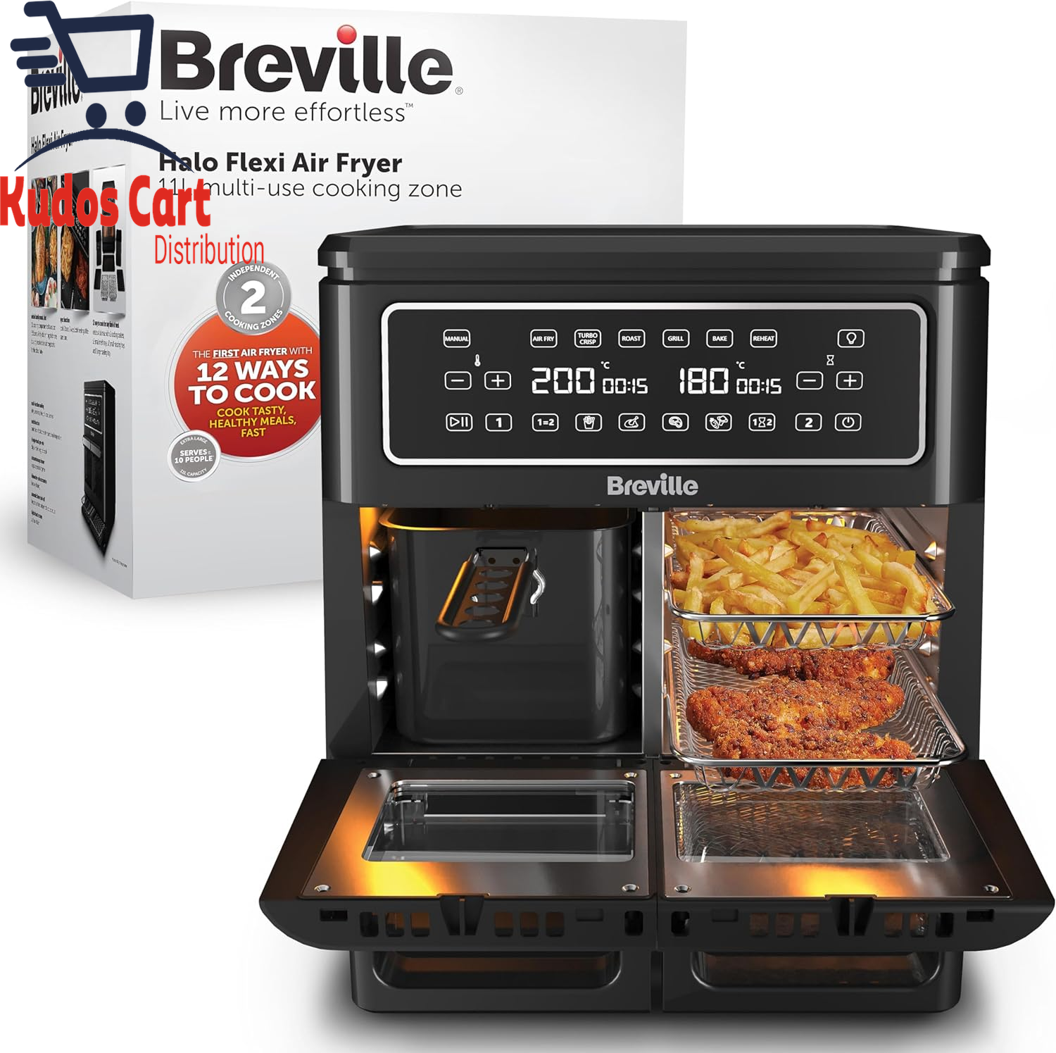 Breville Halo Flexi Air Fryer | Digital Dual Air Fryer Oven | 11L: Serves 10+ People | Fry, Bake, Grill, Roast & Reheat | 2400 W | Save ÃÃ65 a Year