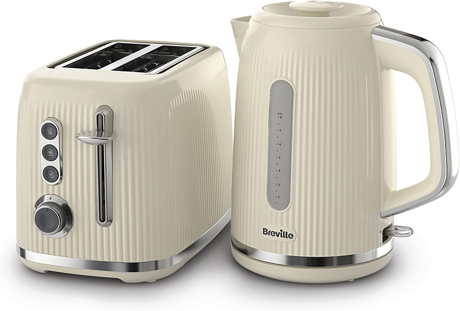 Breville Bold Cream Kettle and Toaster Set | with 1.7 Litre, 3KW Fast-Boil Electric Kettle and 2-Slice High-Lift Toaster | Cream and Silver Chrome