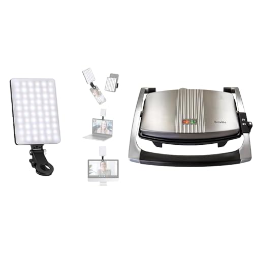 NEEWER Selfie Light with Front & Back Phone Clip, High Power 60 LED 2000mAh Rechargeable CRI 95+ & Breville Sandwich/Panini Press & Toastie Maker | 3-Slice | Non-stick-coated aluminium plates