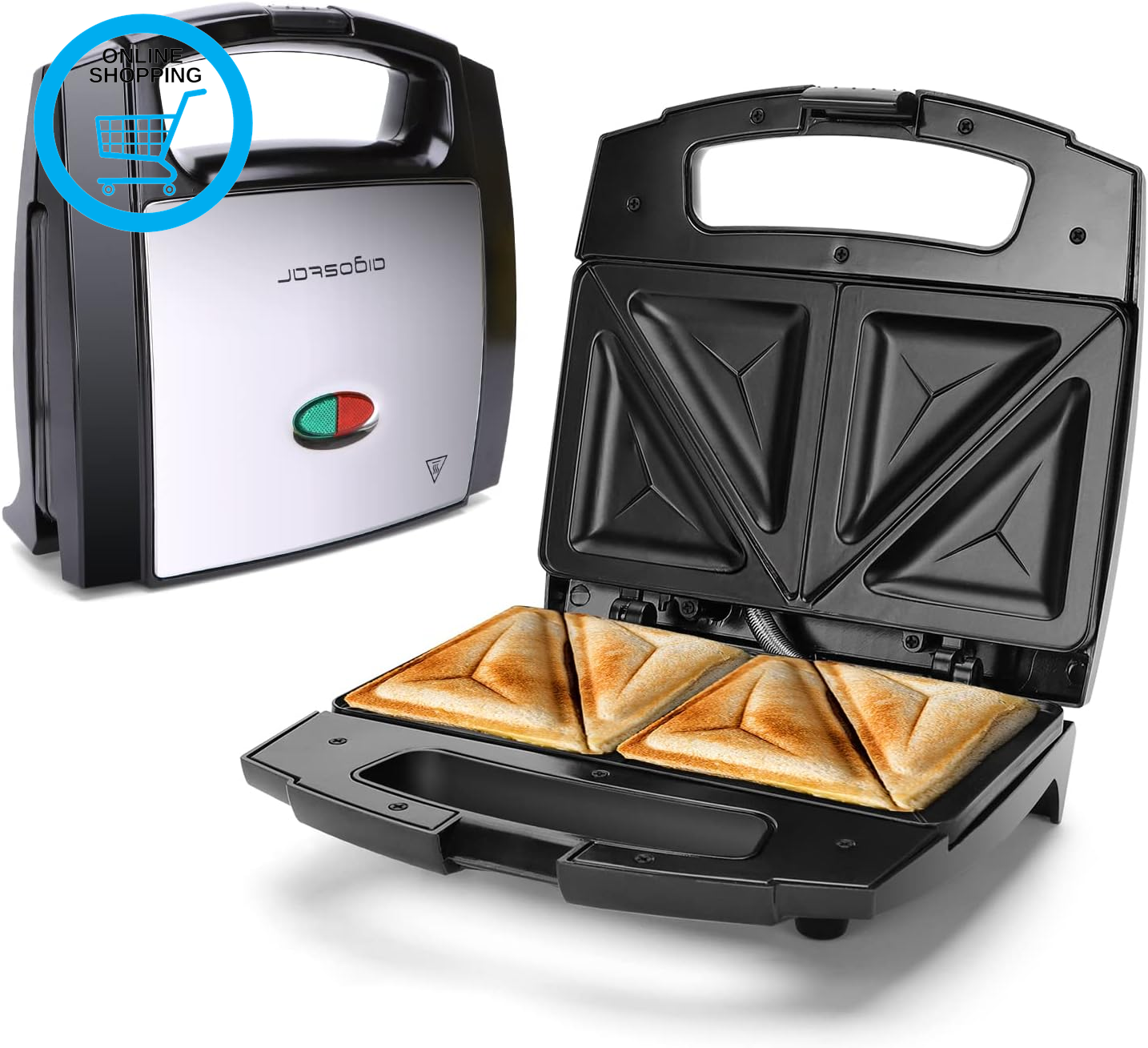 Aigostar 800W Sandwich Toastie Maker 2 Slice Toaster with Easy Clean Non-Stick Hot Plates, Cool Touch Handle, Locking Latch, Stainless Steel, Black - Lamo 30RUE