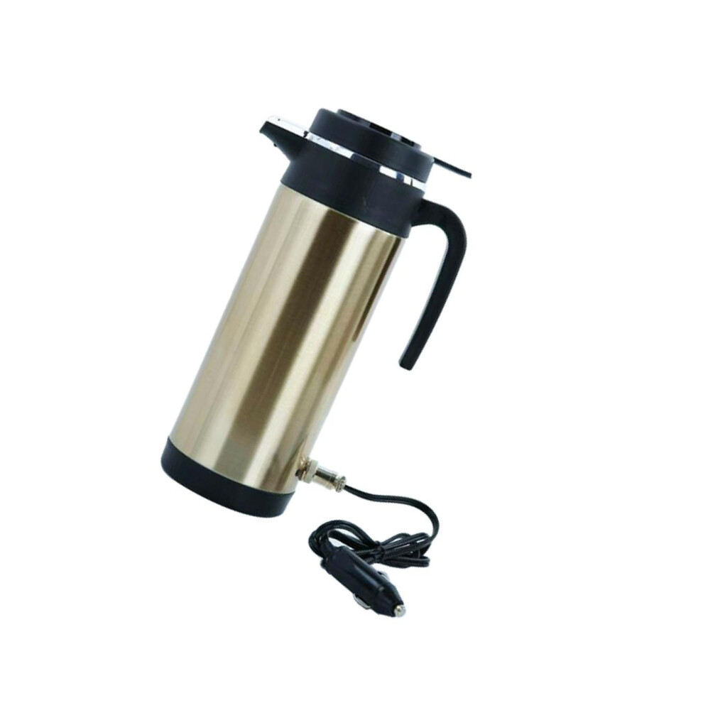 (Golden, 12V) Portable Car Electric Kettle Outdoor Travel Water Kettle Light