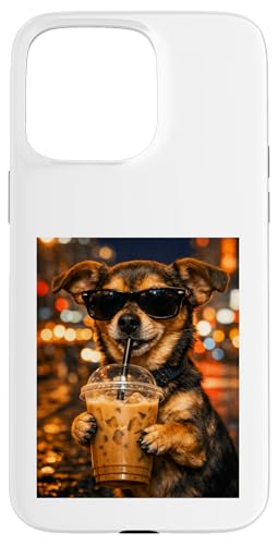 Chiweenie Sipping Coffee Sunglasses Iced Latte Dog City Case for iPhone 15 Pro Max