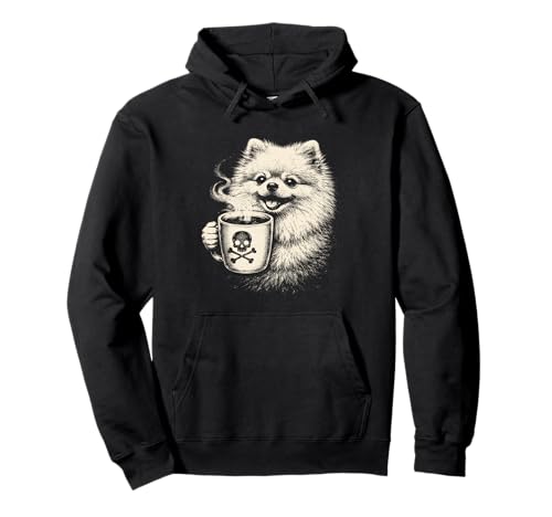 Pomeranian Dog Coffee Skull Bones Morning Brew Graphic Pullover Hoodie