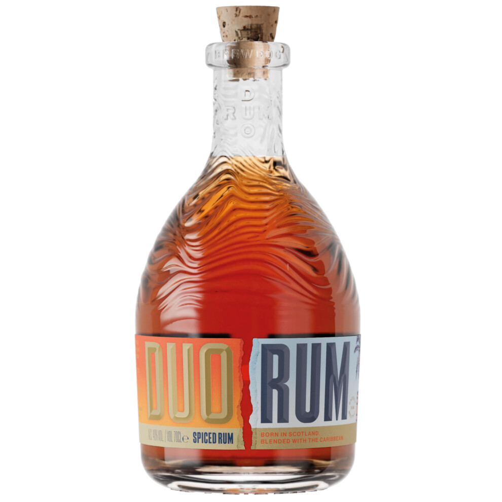 Duo Spiced Rum 70cl, 40 pct ABV - Crafted in Scotland at BrewDog Distilling with Caribbean rum - Zesty orange, lime, vanilla, ginger & kola - Perfect