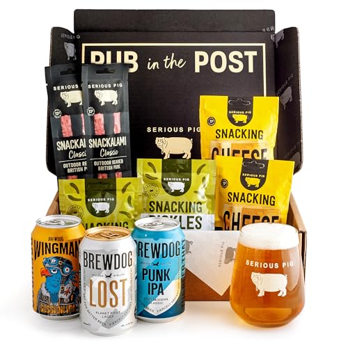 Serious Pig + BrewDog Craft Beer and Snacks Selection Box with Glassware Gift Set (10 Pack)