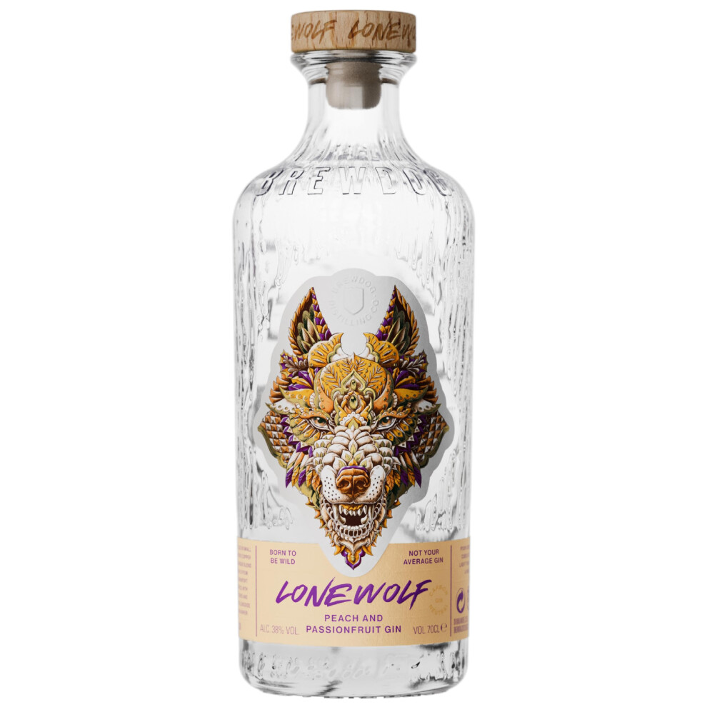 LoneWolf Peach & Passion Fruit Gin 70cl, 38 pct ABV - Handcrafted in Scotland at BrewDog Distilling - Infused with peach, passion fruit and juniper -