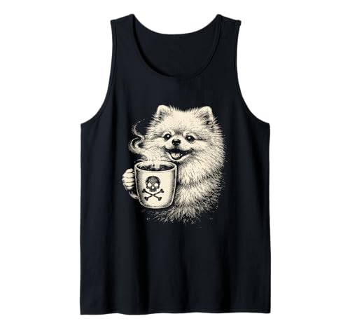 Pomeranian Dog Coffee Skull Bones Morning Brew Graphic Tank Top
