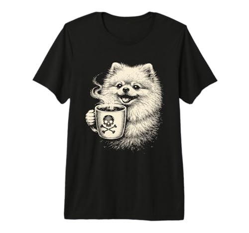 Pomeranian Dog Coffee Skull Bones Morning Brew Graphic Premium T-Shirt