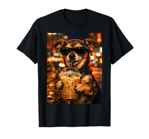 Chiweenie Sipping Coffee Sunglasses Iced Latte Dog City T-Shirt