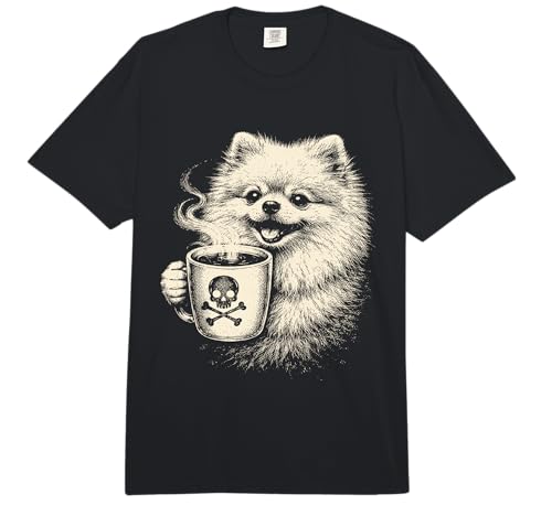 Pomeranian Dog Coffee Skull Bones Morning Brew Graphic Comfort Colors Adult Heavyweight T-Shirt