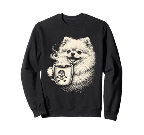 Pomeranian Dog Coffee Skull Bones Morning Brew Graphic Sweatshirt
