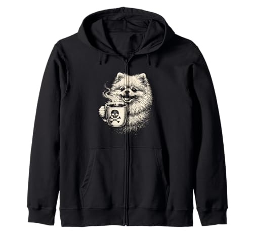 Pomeranian Dog Coffee Skull Bones Morning Brew Graphic Zip Hoodie