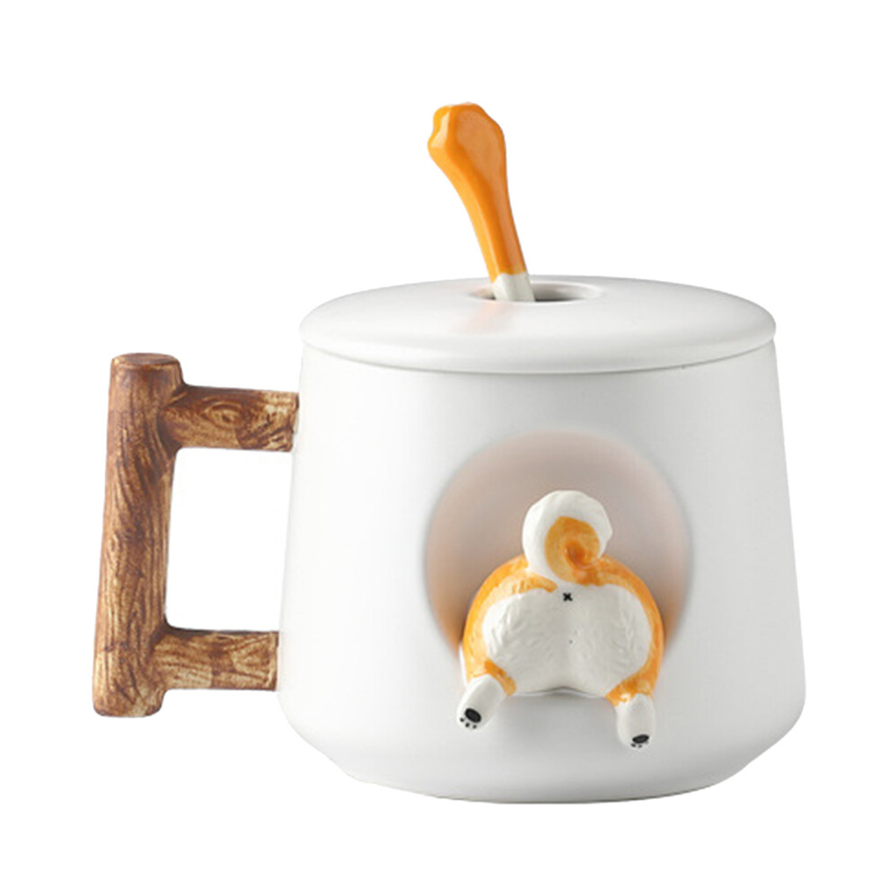 Cute Cartoon Dog Ceramic Coffee Mug With Lid Spoon Fun Brew Milk Tea