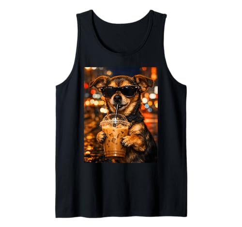 Chiweenie Sipping Coffee Sunglasses Iced Latte Dog City Tank Top