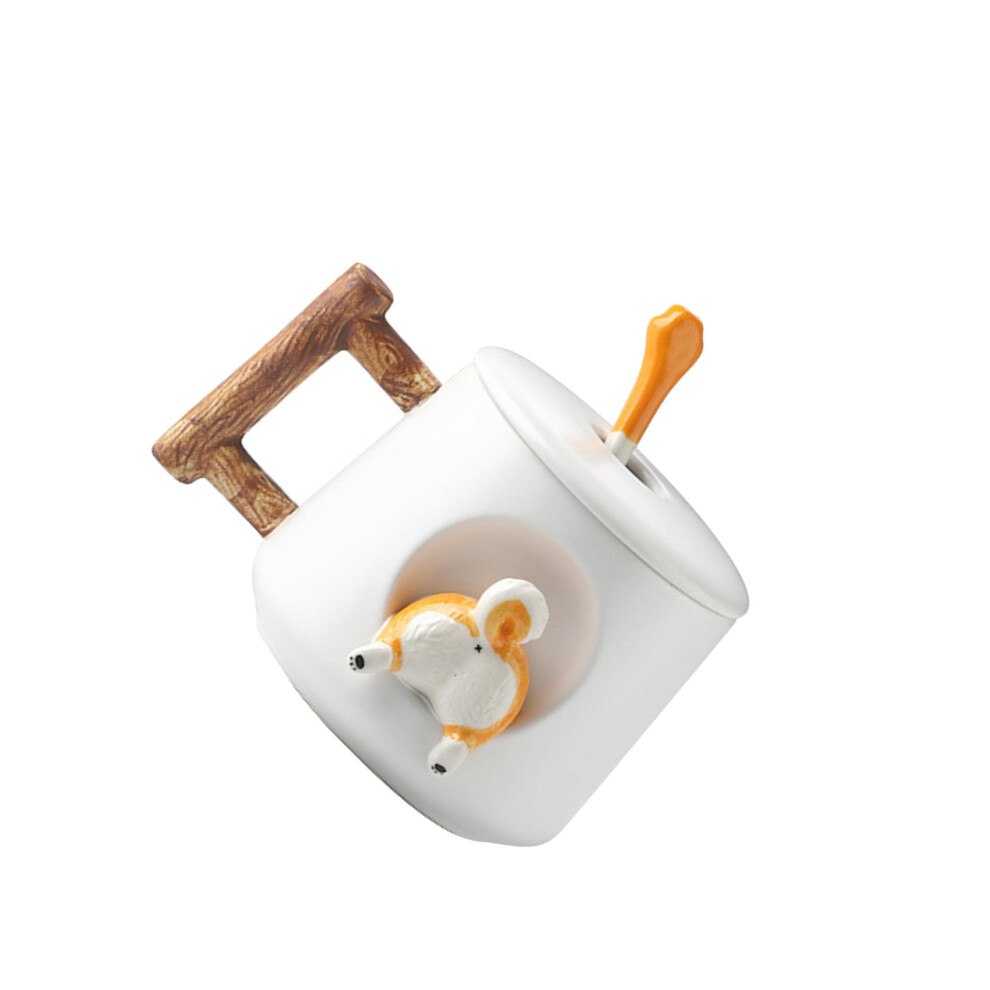 Cartoon Dog Ceramic Mug With Lid Spoon Brew Milk Tea Drinking Water
