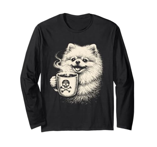 Pomeranian Dog Coffee Skull Bones Morning Brew Graphic Long Sleeve T-Shirt