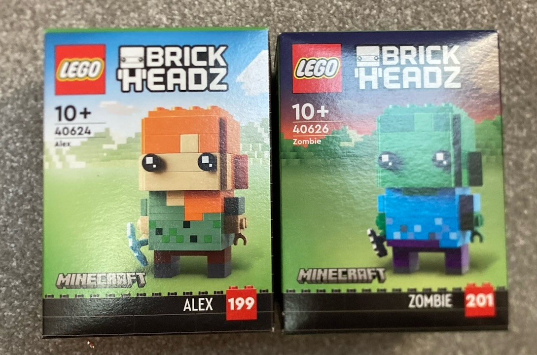 LEGO Brickheadz Minecraft Alex Building Set 40624 + Zombie 40626 Bubble Wrapped