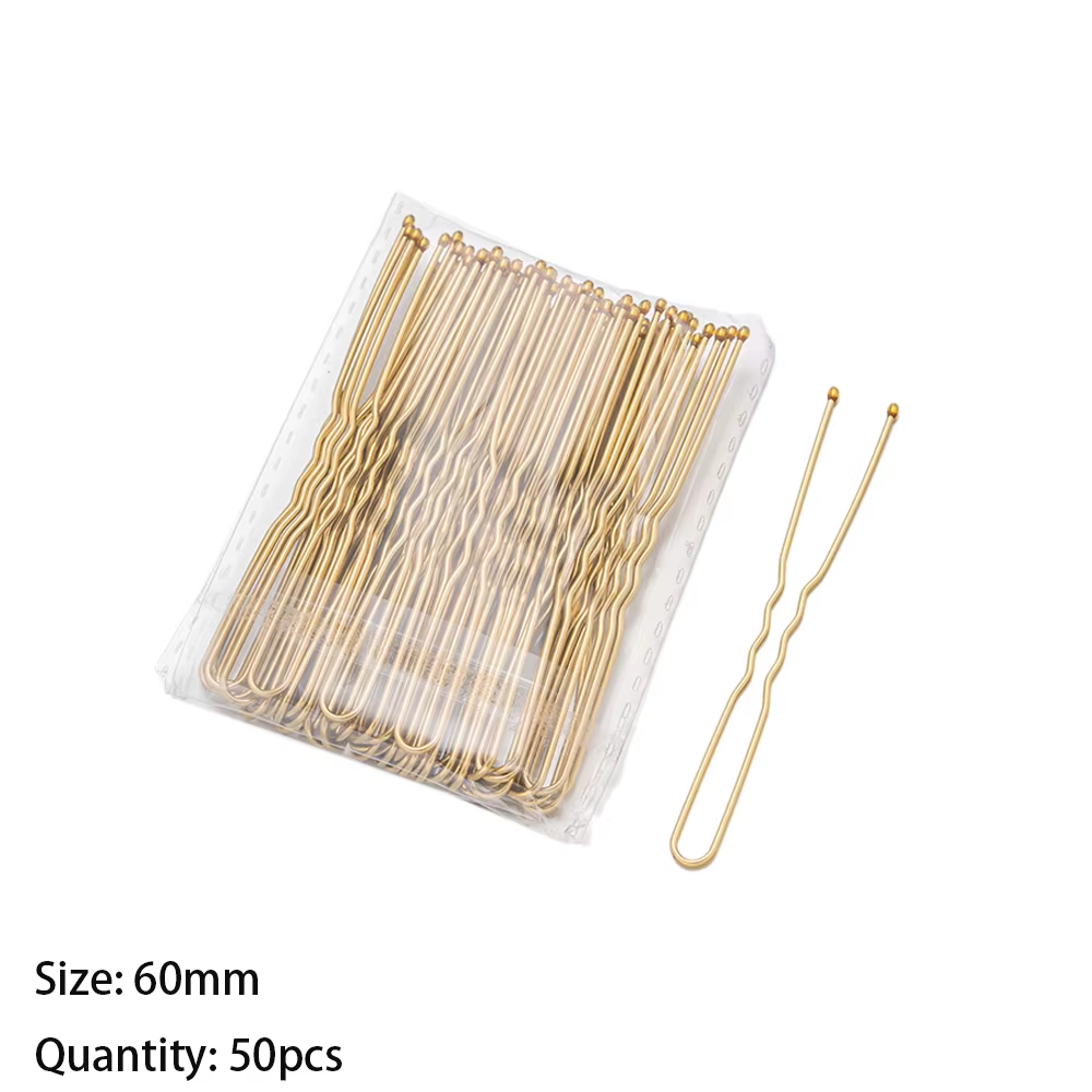 50Pcs U-Shape Hair Pins Clips 50–70mm for Women Girls Bridal Hair