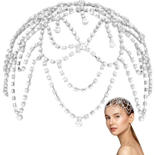 GORGECRAFT 1920s Crystal Cap Headpiece Flower Rhinestone Head Chain Silver Roaring 20s Great Gatsby Hair Accessories Hair Chain Hat with 2 Clips for Bridal Halloween Cosplay Party Art Decor