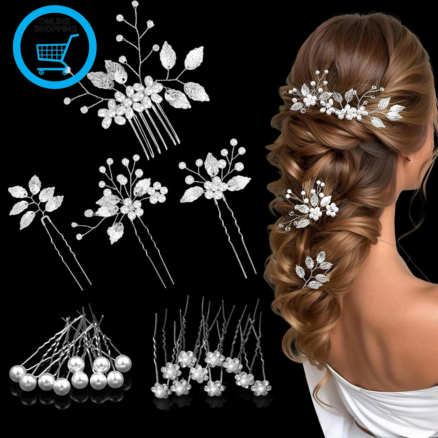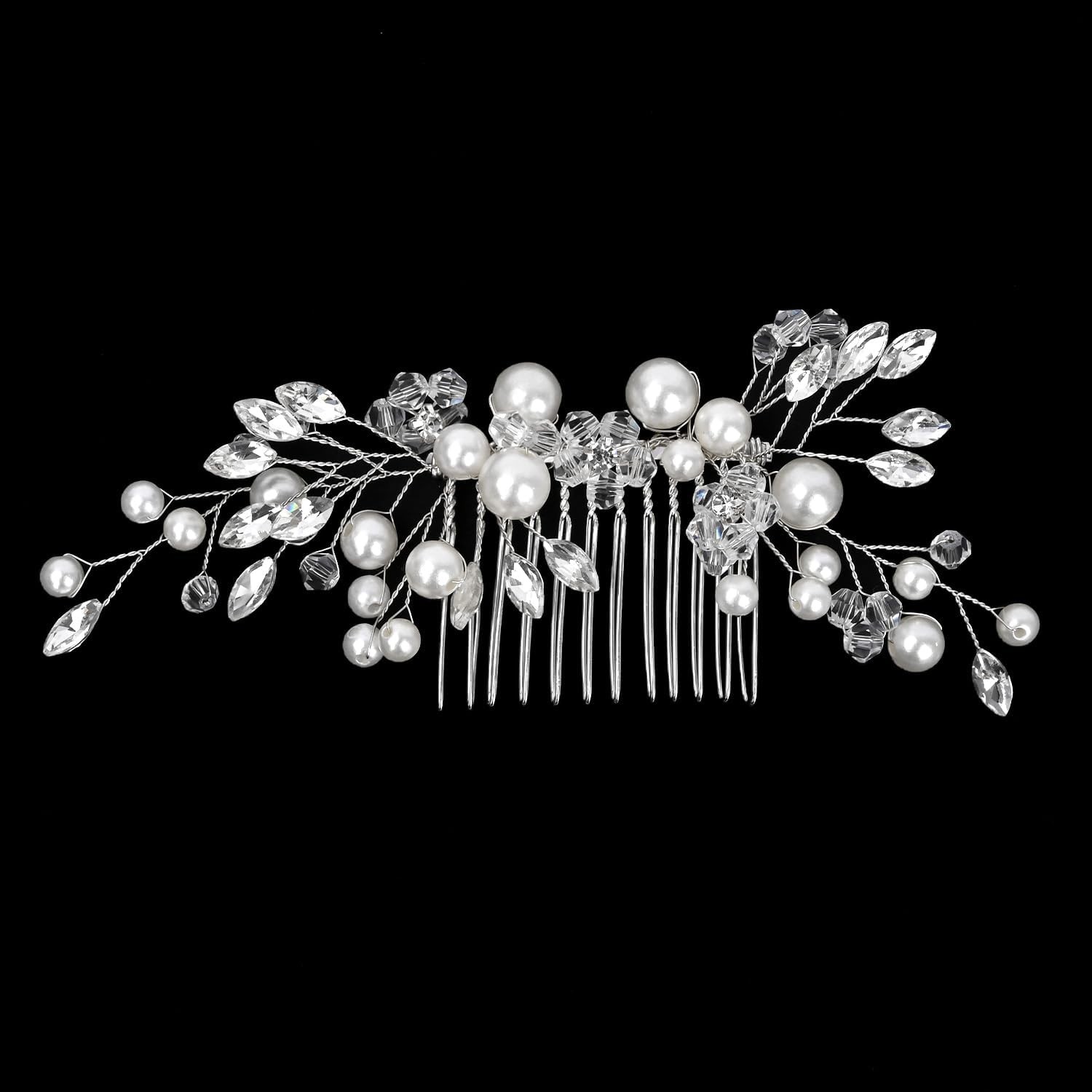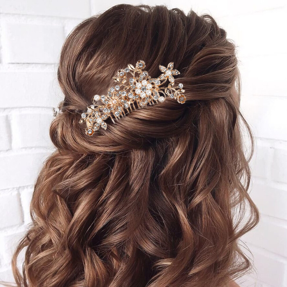 Pearl Bridal Hair Clips with Floral Comb - Adjustable Crystal Wedding Hairpins