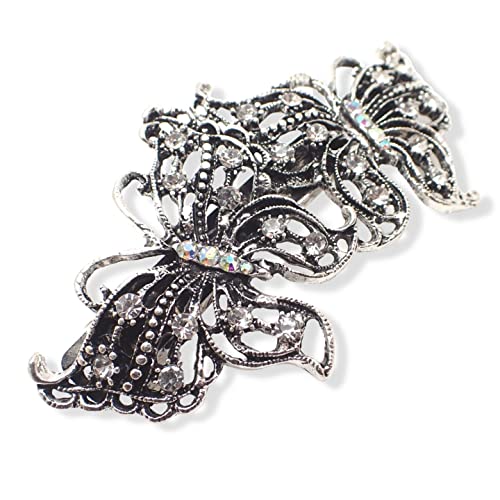 Topkids Accessories Vintage Claw Clip Hair Accessories for Women, Diamante Hair Clips for Women Bridal Hair Accessories Hair Jewellery Hair Clips Women Silver Hair Clips Hair Grips (Double Butterfly)