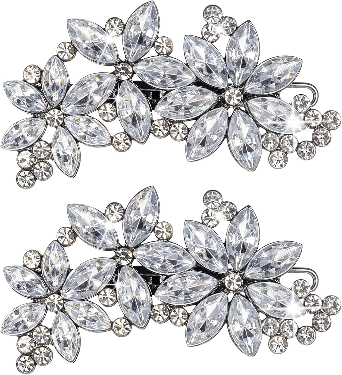 Lnngub 2 Pcs Rhinestone Hair Clips,Crystal Flower Bridal Hair Clips Silver Rhin
